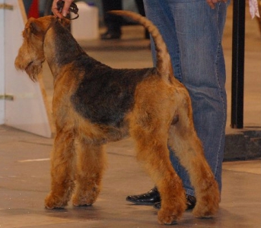 Bei den über 100 gemeldeten Airedale Terriern wird "Glenroses You`re Capt.Future" vorzüglich bewertet.