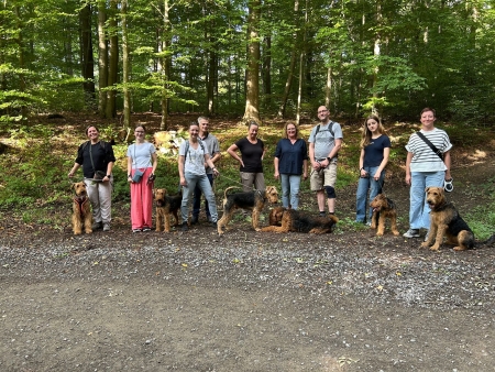 aus Schleswig-Holstein angereist, mit Ihrer jungen Airedaledame "Glenroses Zest for Life" die mal Ausstellungsluft schnuppern sollte.